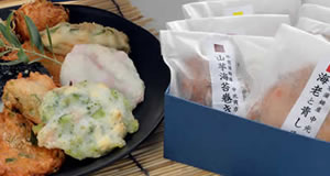 | イカ | 紋甲いかと青ねぎ天、するめいか天、イカ墨チーズ天 |